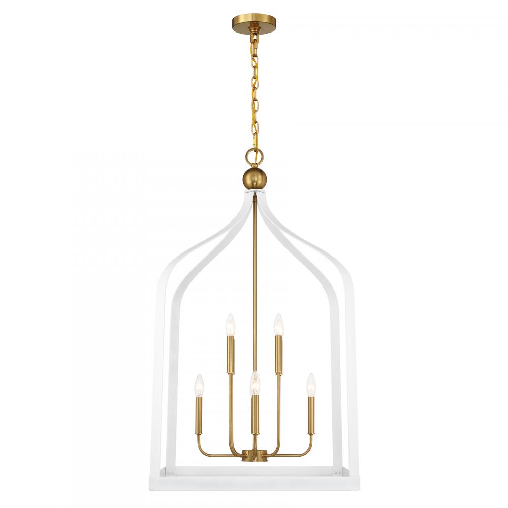 The Savoy House Sheffield 8-light pendant offers up a beautiful, elegant and classic look with a lantern-like style, airy openness and a White finish with Warm Brass accents. It is 41.5" in height and 23.5" in width. It uses eight candelabra size bulbs of up to 60 watts per bulb. Bulbs not included.