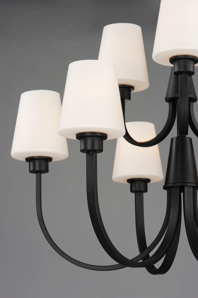 Graceful arcs of rectangular tubing transition to round cups that support tapered Satin White glass shades creating a crisp and clean transitional design. The frame is finished in your choice of Satin Nickel or Black which bridges modern and transitional d