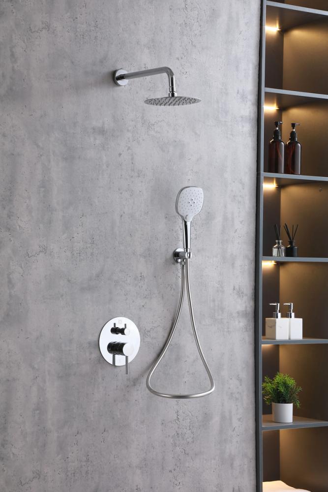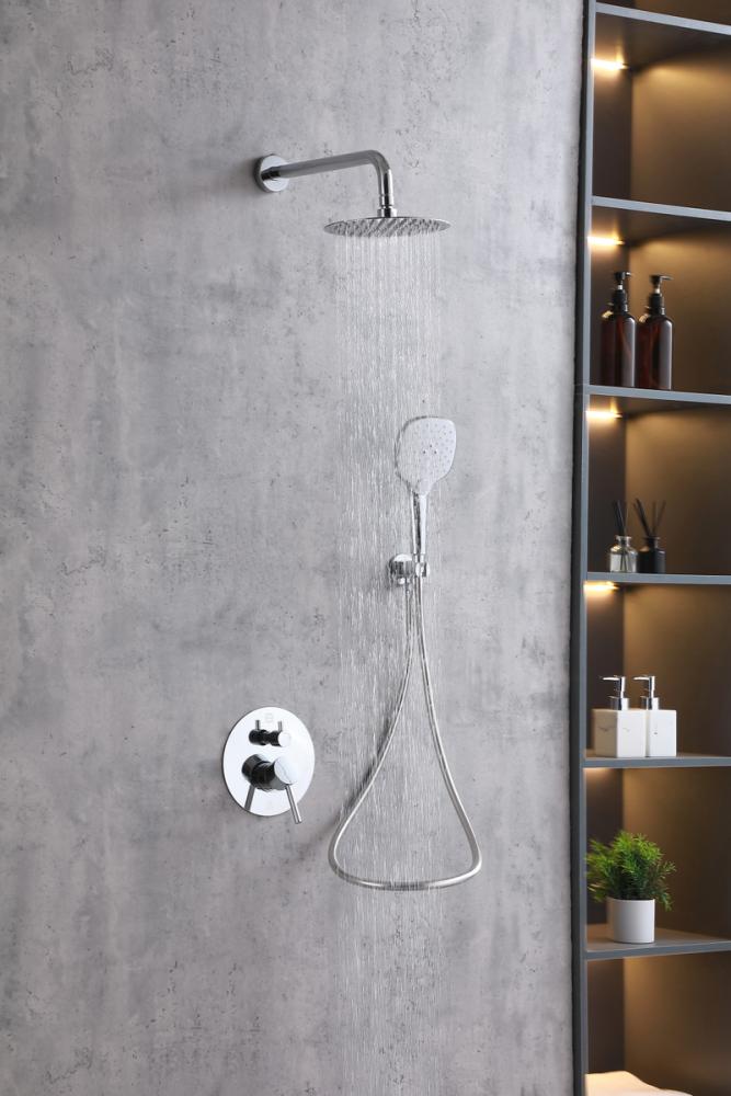 Crafted from a combination of brass and stainless steel, our shower set not only adds a sleek touch to your bathroom but also ensures long-lasting durability. It's built to withstand the rigors of daily use.
