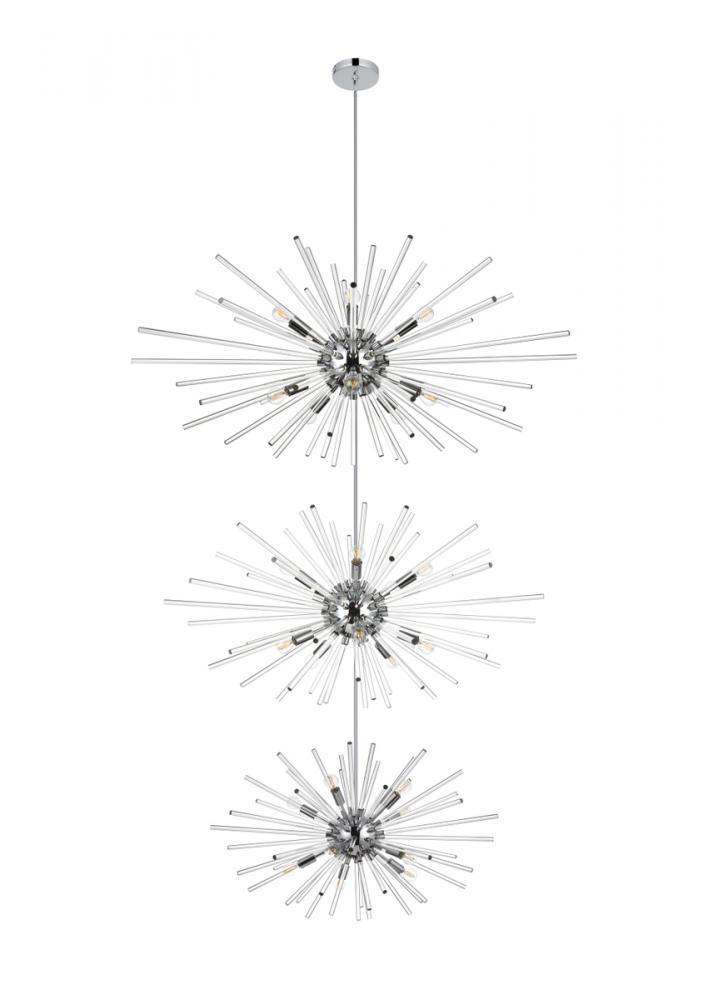 Enjoy the beautiful design of the Sienna collection pendants. The clear crystal rods seem as if they are following the direction of the lights bringing about illumination. is it the sun? is it a new day? No, it's simply just a fabulous light pendant! The perfect addition to your home, whether it's the living room, dining room, office or the entryway. Sloped ceiling adaptable with a durable swivel could be mounted on vaulted or angled ceilings. The length between each sphere can be configure to your needs as it comes with 70 inch long hanging rods. You can choose to hang the sphere from largest to smallest or vice versa.