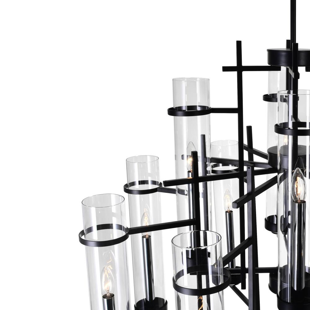 An artful light source for your contemporary home. This Sierra 12 Light Up Chandelier displays a beautiful mix of modern elegance and classic appeal. The 30 inch round formation of tiered cylindrical glass candle holders encasing candelabra bulbs will prov