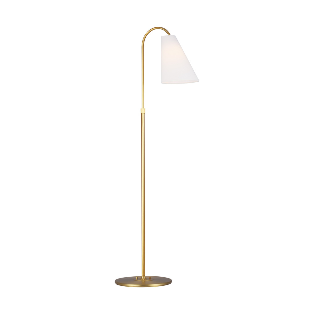 The Signoret by Thomas O'Brien one light floor lamp in burnished brass is hand carved from wax, as the wax melts the metal takes it stunning shape. Shade can be rotated around the lightbulb to cast the light in the directions that best suit the room. The sophisticated matte black and gold finishes combine to create a chic chandelier, wall sconce or lamp that will look great with any modern or contemporary decor.