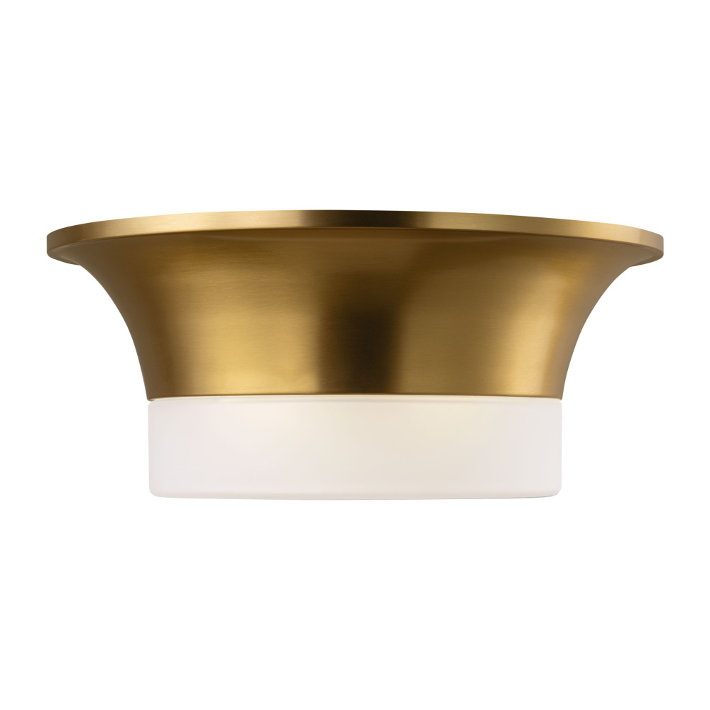 The Sina flush mount by Alexa Hampton plays with proportion through a shallow cylinder and generous flared silhouette. The striking contrast between the dark metal band and white glass diffuser is complemented by a softly cast glow. Available in two finishes, the Sina flush mount silhouette will fit effortlessly into any room.