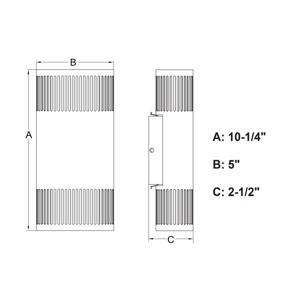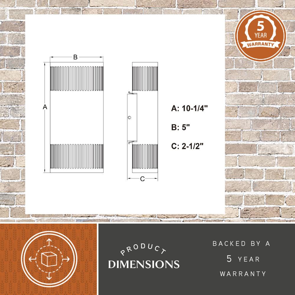 5-in W x 10.25-in H x 2.5-in D with 4.33-in W x 4.33-in H backplate