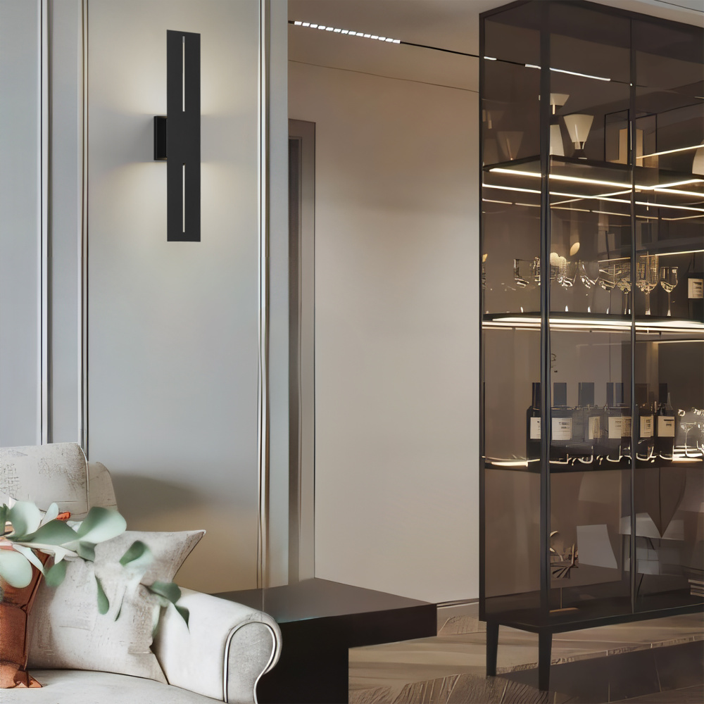The Slot Exterior LED Wall Sconce combines sleek, minimalist design with clean lines and a distinctive center reveal, offering understated elegance for outdoor spaces. Featuring both up and down lighting, it creates a warm, inviting glow that enhances any exterior. Wet location rated for durability, it also includes 3-CCT customizable lighting and dimming capabilities, allowing you to tailor the ambiance to your preference. Ideal for adding a modern touch, the Slot Sconce elevates any outdoor or indoor setting with both style and function.