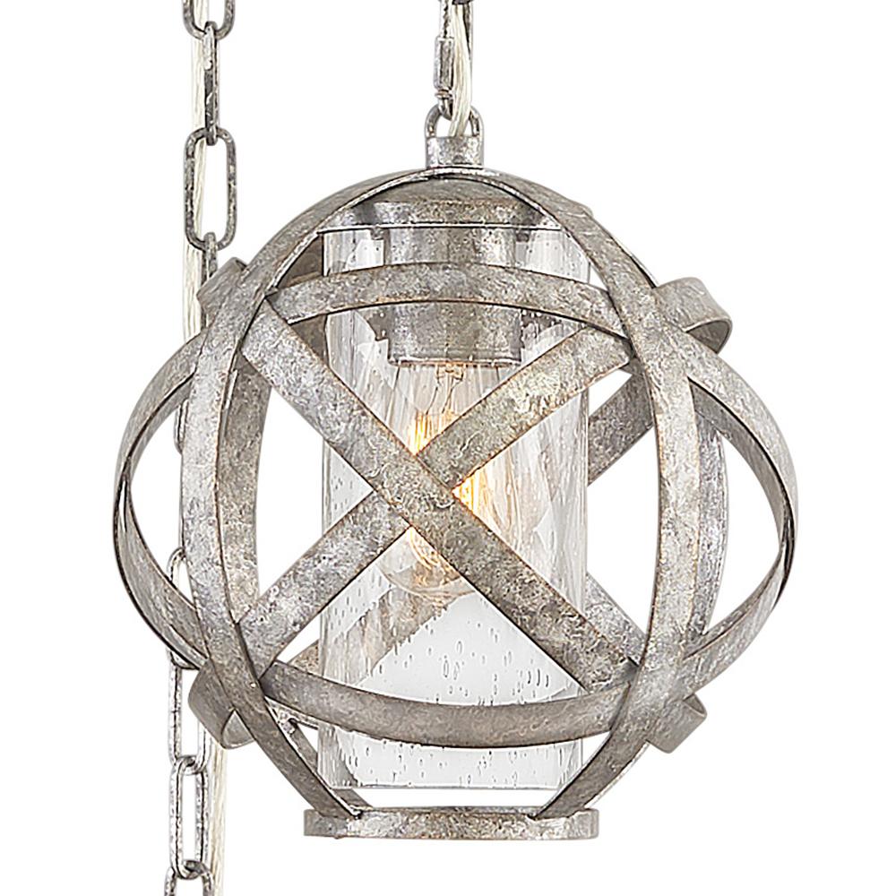 Carson features bold overlapping metal ribbons of Vintage Iron or Weathered Zinc, enhancing an outdoor living area with style and substance. The hand-crafted pendants combine a hint of industrial sophistication with the allure of artisan craftsmanship.
