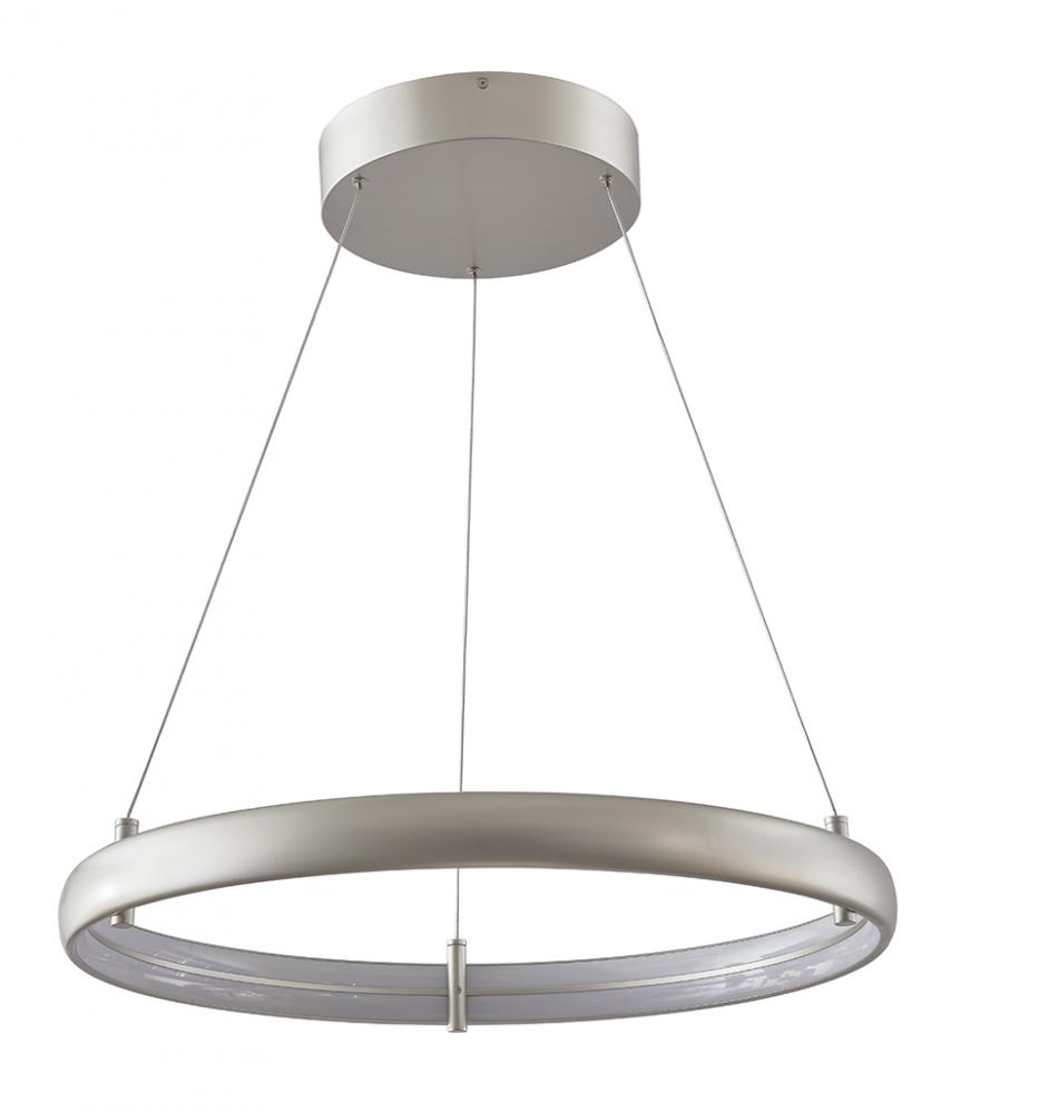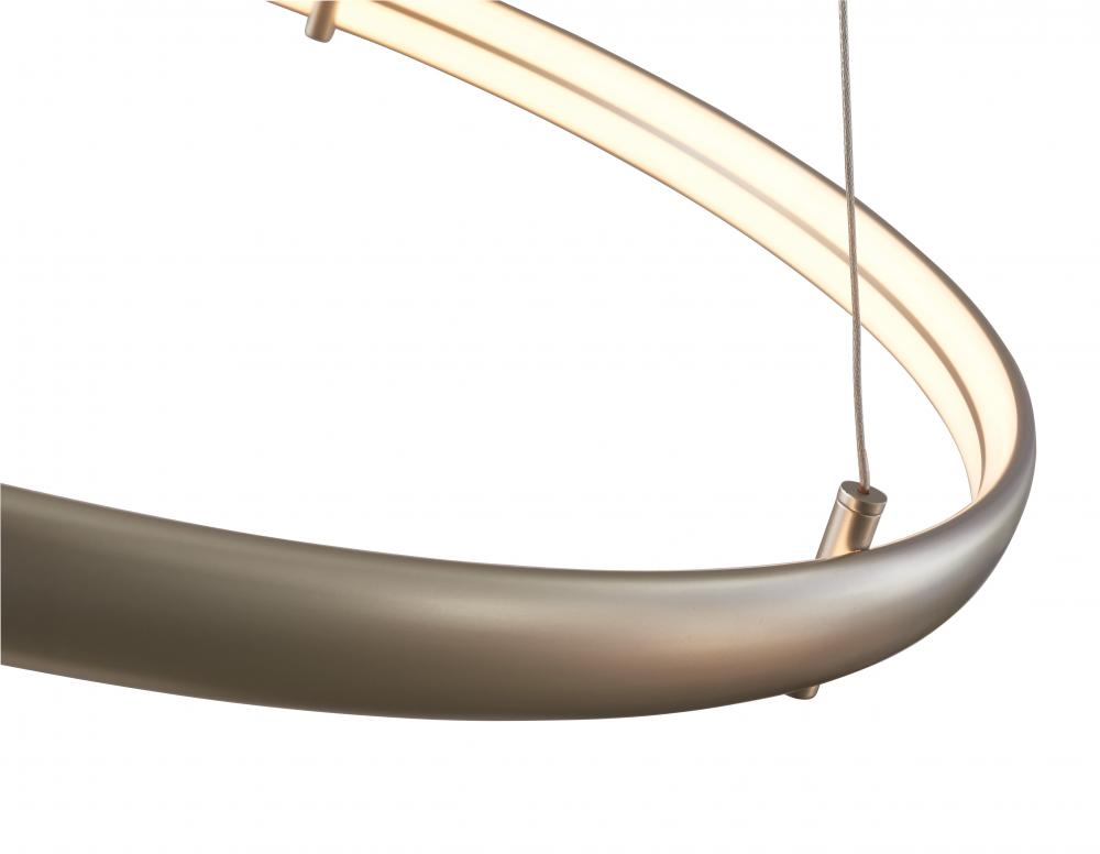 In the Sling ring pendant, available in Bronze or Titanium Silver, aircraft cable mounting points feed power to the fixture, eliminating the unsightly power cord for a seamless look. The fixture has a high-power lumen output and is dimmable with most dimmers. Supplied with 10 feet of aircraft cable for flexibility in installation, Sling ring pendant would provide a modern touch installed above a dining room table. Supplied with a universal 120-277V driver.