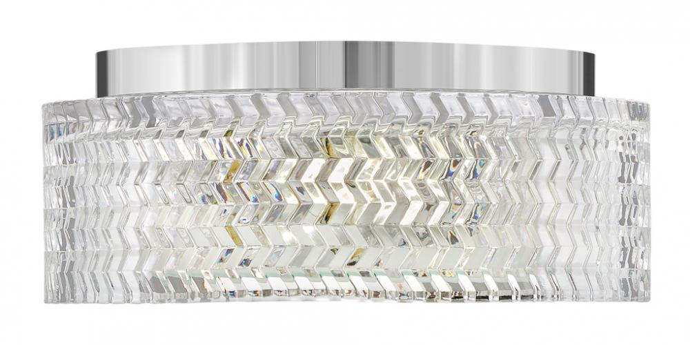 Traditional elegance with a modern edge defines Elle’s graceful design. Rich chevron cut glass provides interesting light refraction and is a dramatic focal point whether the light is on or off. The gleaming metal finish adds to the glam design that gives a touch of radiance to any space.