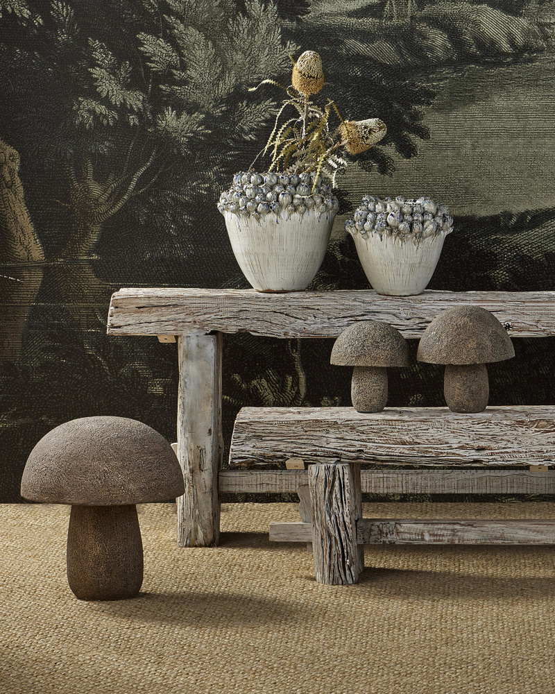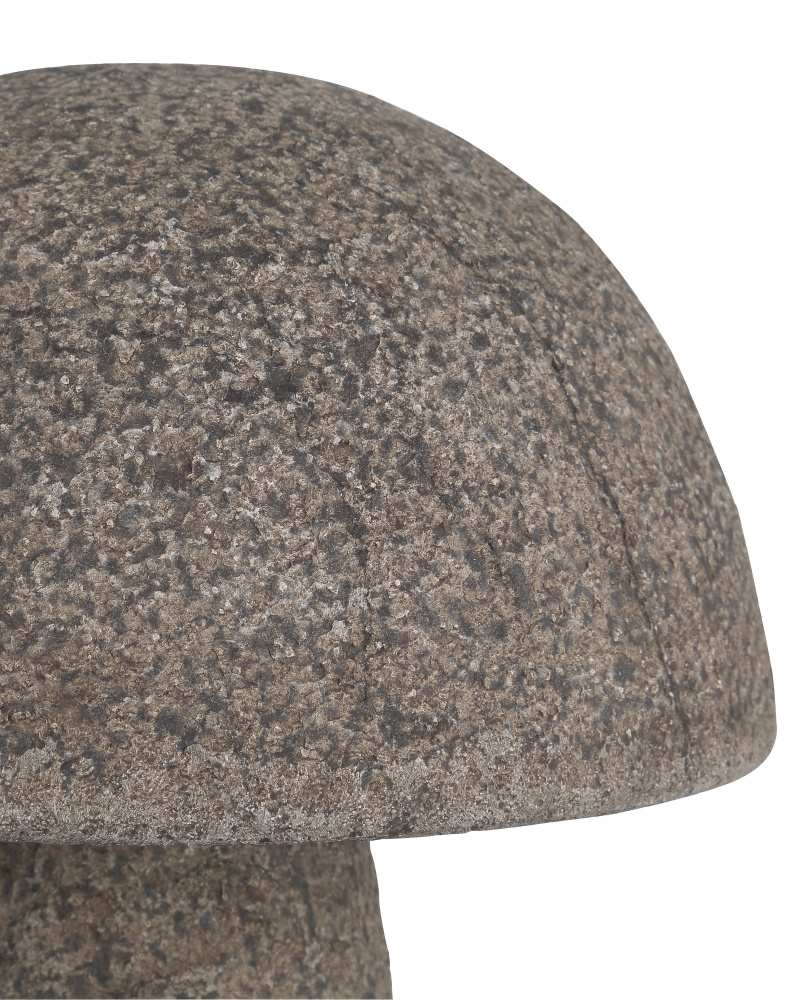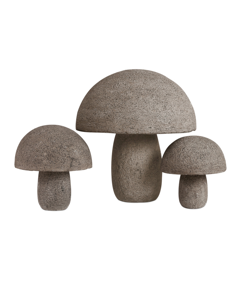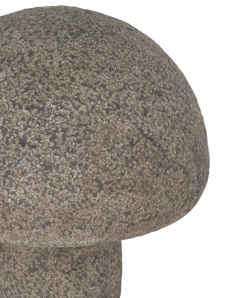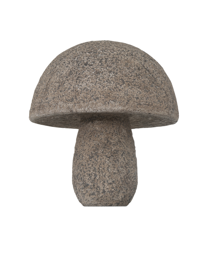 To create the Small Granite Mushroom, artisans take a cube of stone and carve it until they reach a perfect mushroom shape. They then finish the sculpture in a textured brown to make it look like it's an aged garden artifact.