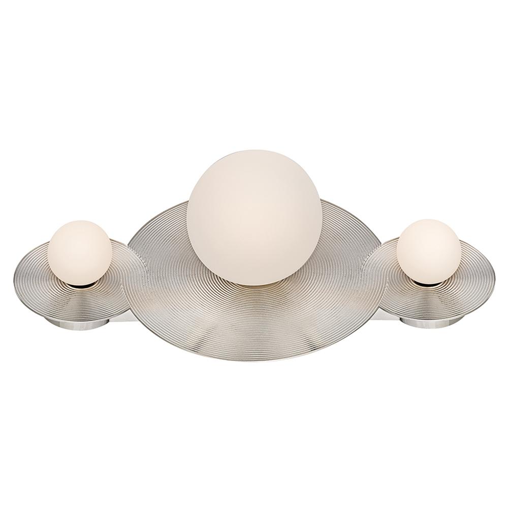 Evoking the concepts of eternity and limitlessness, Rhea’s continuously flowing loops of refined metal create a ribbed texture along its gracefully curved backplate. Dimmable, integrated LED lamping brings comfortable energy into any bathroom or small interior space. Rhea can be installed vertically, horizontally, or even as a flush mount on a ceiling.