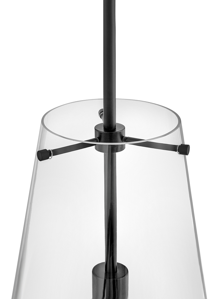 Beck's transitional style is reinforced by a smooth Lacquered Brass or Black finish paired with an etch-dipped glass shade offering texture and visual interest.