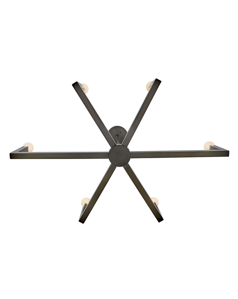 The Ezra family stunningly pairs minimalist elegance with an industrial edge. The strong square arms, sharp angles, and bold silhouette add dimensional appeal, bringing interest to dining rooms, foyers, kitchens, and beyond. Pairing Ezra with a globe-style bulb nails down the transitional, mid-century modern vibe.