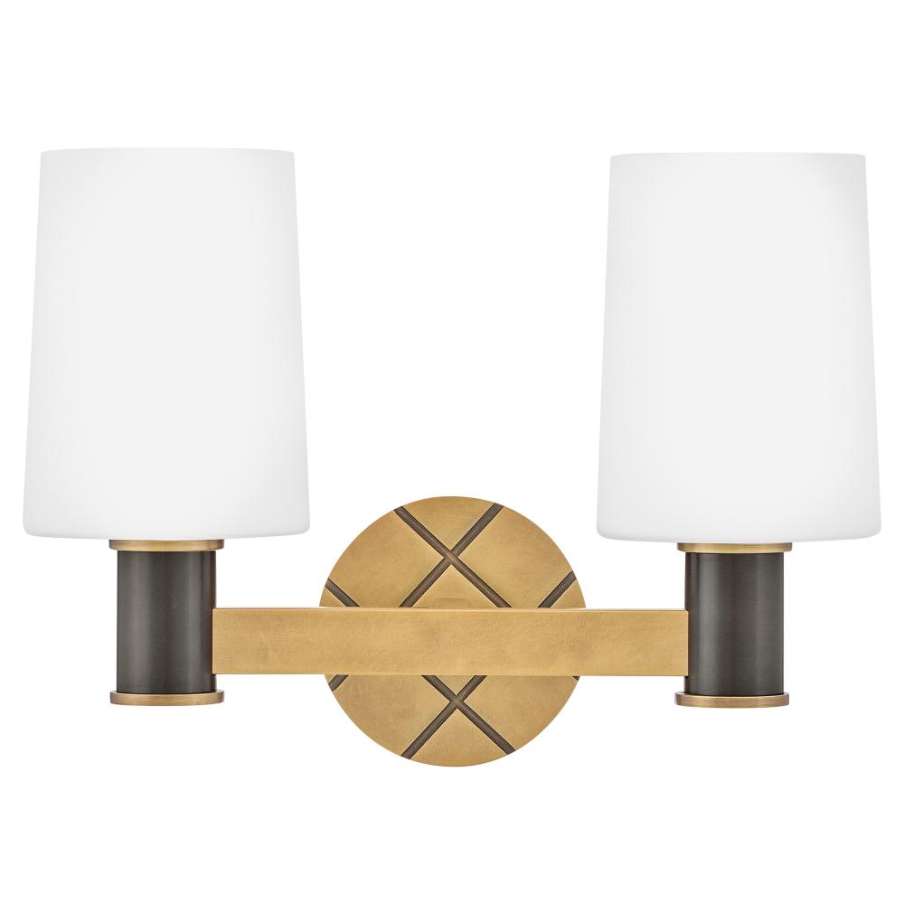 Featuring a geometric, crosshatch motif, Declan’s substantial silhouette is enhanced by a heavy cast backplate and stem accentuated by a contrasting, two-tone finish. Tall, tapered, etched opal glass shades create softly diffused illumination and a comfortable atmosphere.