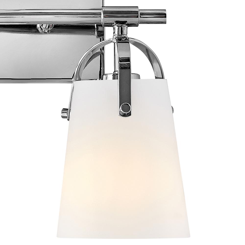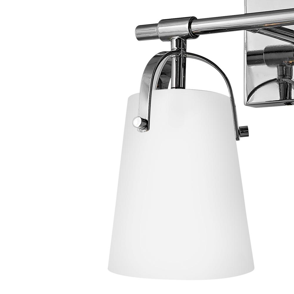 Clean and airy, Foster breathes composed simplicity into any bath space. Softly tapered glass shades suspended from arched handle prongs create a sophisticated transitional silhouette, enhanced by practical yet stylized details.