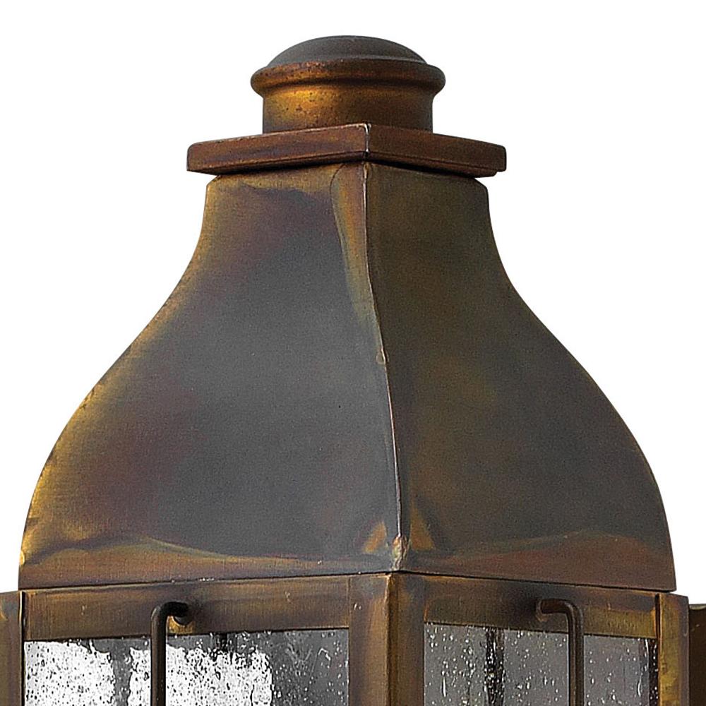 Bingham’s traditional style recalls a turn-of-the-century gas light reproduction. The vintage look is nautical in nature and recognizes Hinkley’s origins on the shores of Lake Erie. The aluminum construction features clear seedy glass and a Greystone or Sienna finish, while candelabra bulbing completes the authentic style.