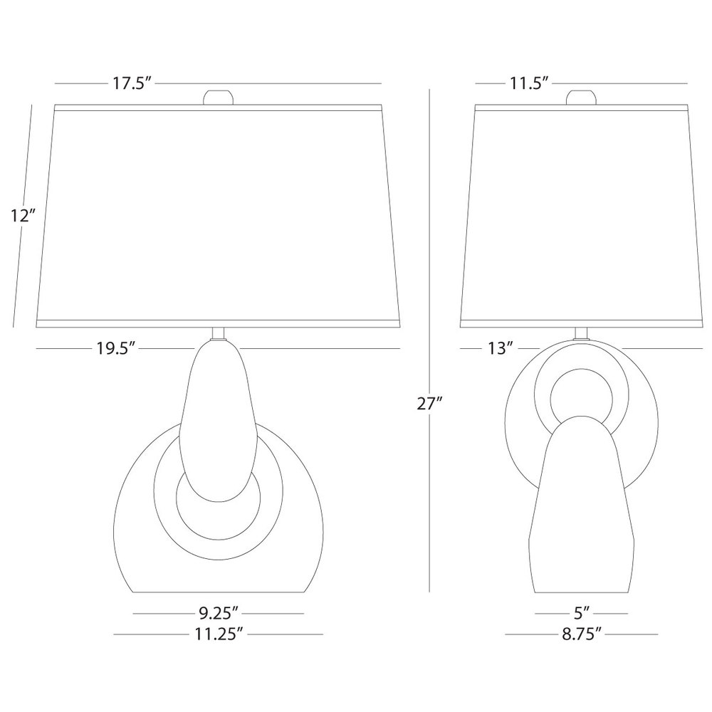 Smokey Taupe Glazed Ceramic with Polished Nickel Accents Fusion Table Lamp with Oval Oyster Linen Shade - A contemporary collection, Fusion draws the eye with elegant curves, flowing movement and a design comprised of joined rings.