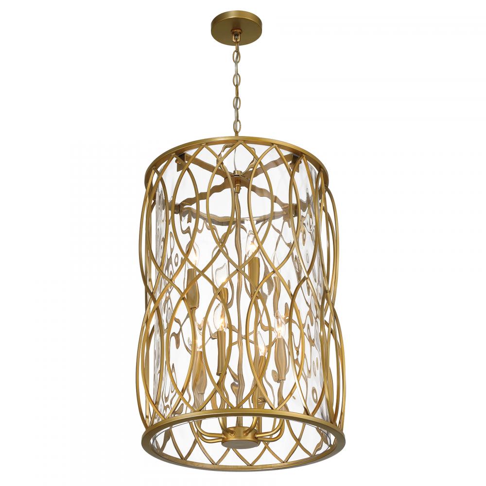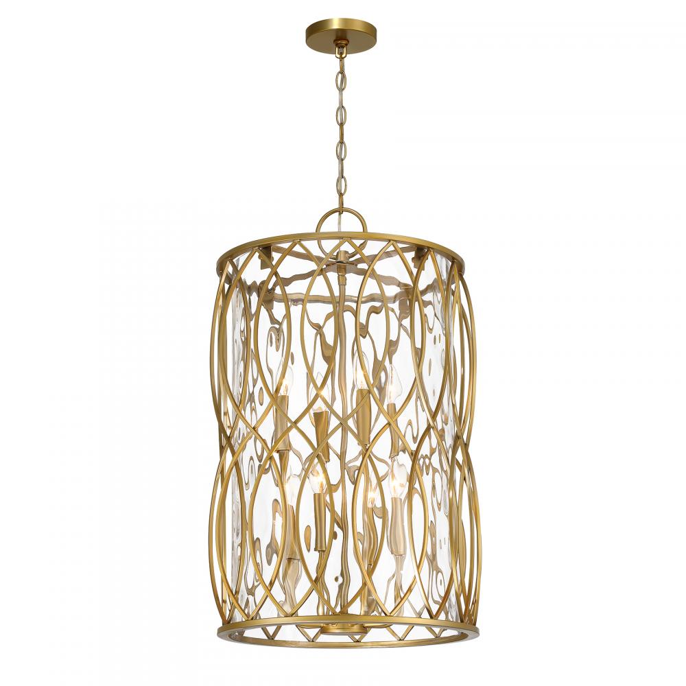 Get an unbelievably cool lighting look with the Savoy House Snowden 8-light pendant. Its tall, slim, cylindrical structure features an intricate curving design that perfectly accentuates the glacier glass shade within. Finished in Burnished Brass. Snowden is 30" in height and 18" in width. It uses eight candelabra size bulbs of up to 60 watts per bulb. Bulbs are not included.