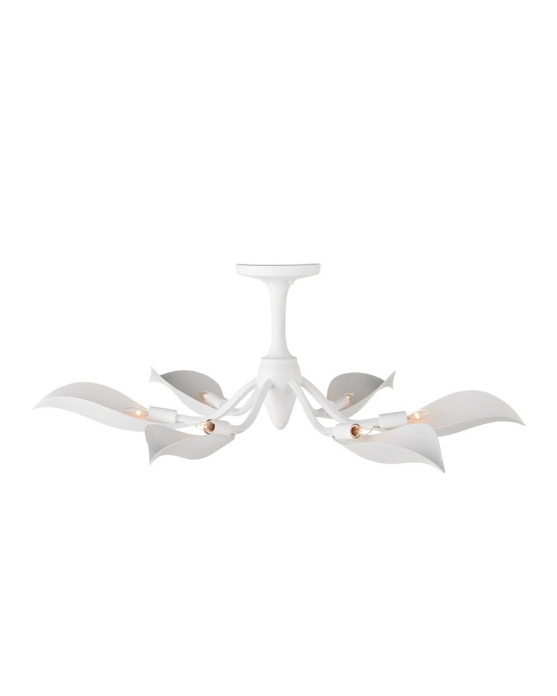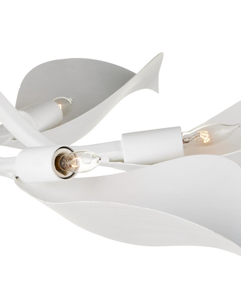The big, beautiful blossoms of the Snowflower Semi-Flush Mount and the frame they flow from are made of wrought iron in a gesso white finish. Nodding toward the ceiling, the slightly folding petals direct the light upward. The crisp color of the finish will enhance the coolness of the illumination to create more brightness. The white semi-flush with its wild botanical personality will reflect any number of design styles with grace.