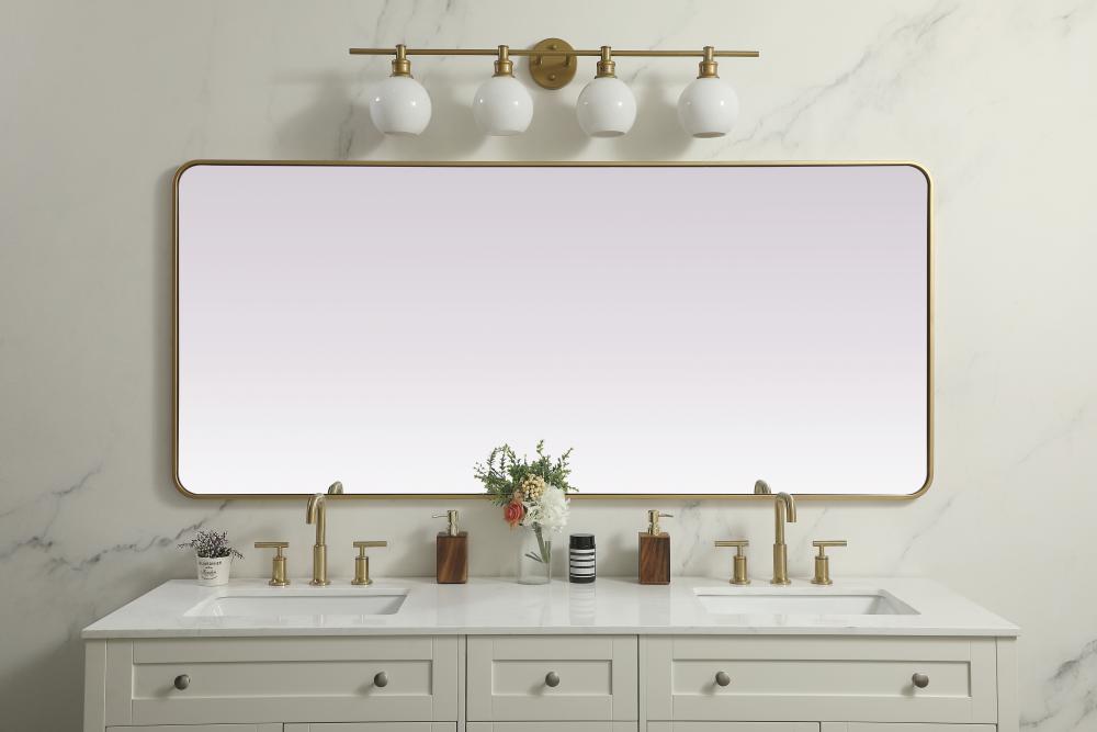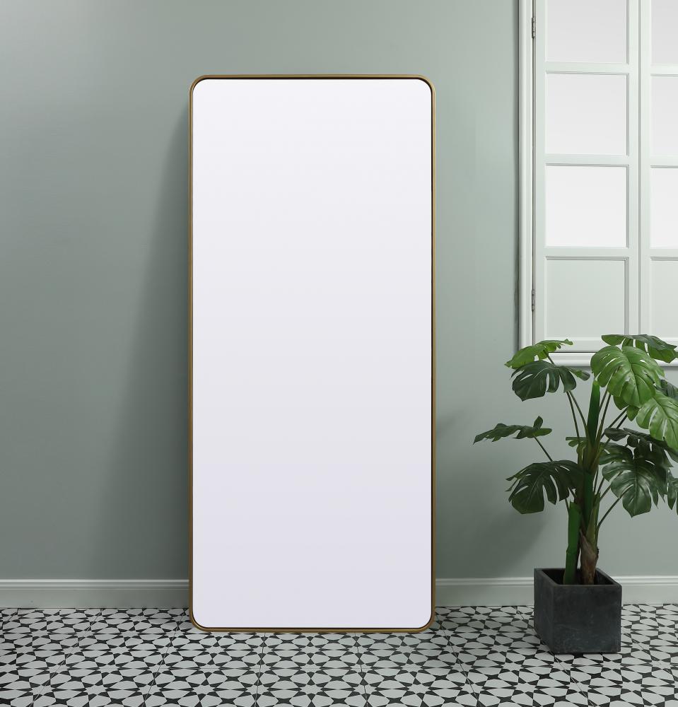 Soft Corner Metal Rectangle Mirror 32x72 Inch in Brass