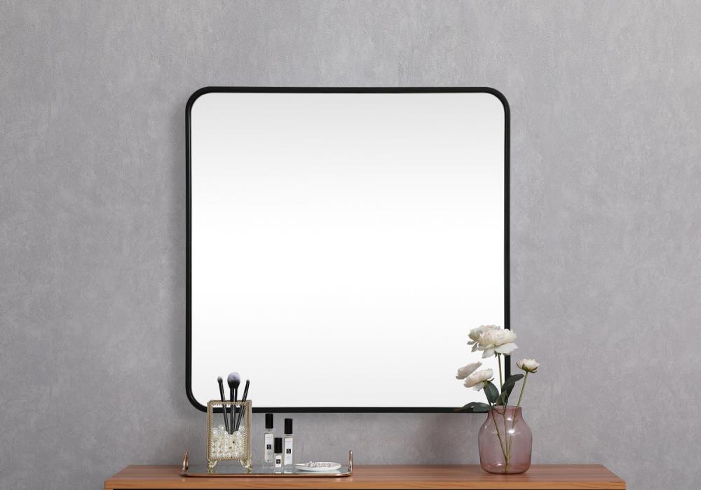 Soft corner metal square mirror 30x30 inch in Black