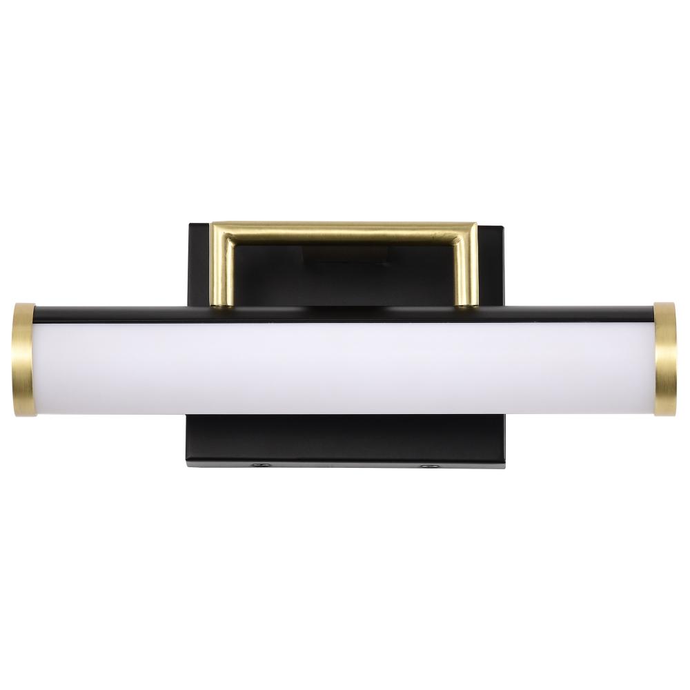 Solano Small Vanity; LED; Black and Brushed Brass Finish; White Acrylic Lens