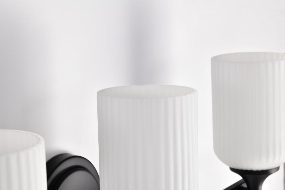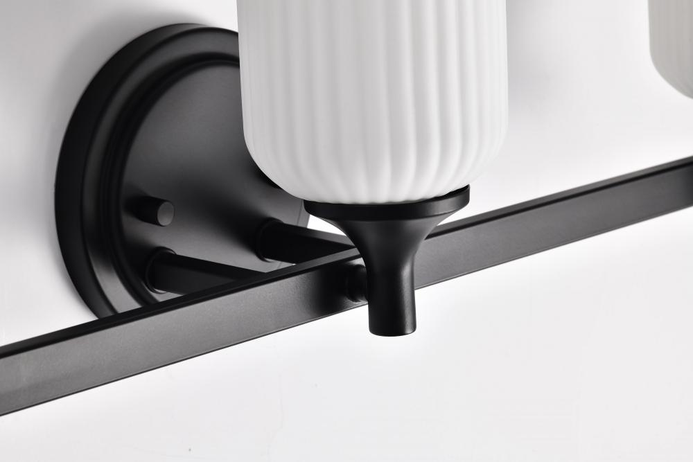 Solara; 3 Light Vanity; Matte Black Finish; Frosted Ribbed Glass
