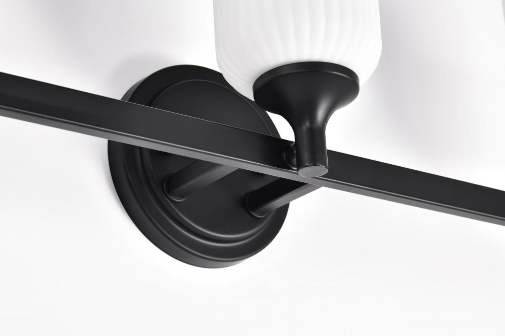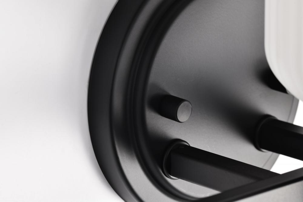 Finished in Matte Black with Frosted Ribbed Glass