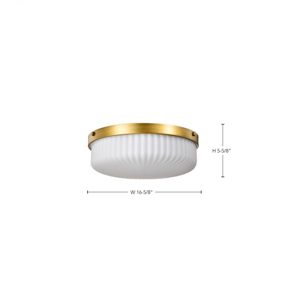 Solara; Flush Mount; Natural Brass Finish; Frosted Ribbed Glass