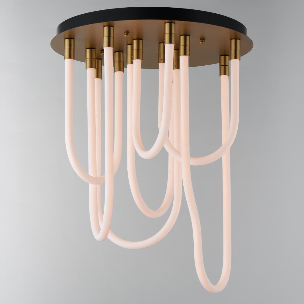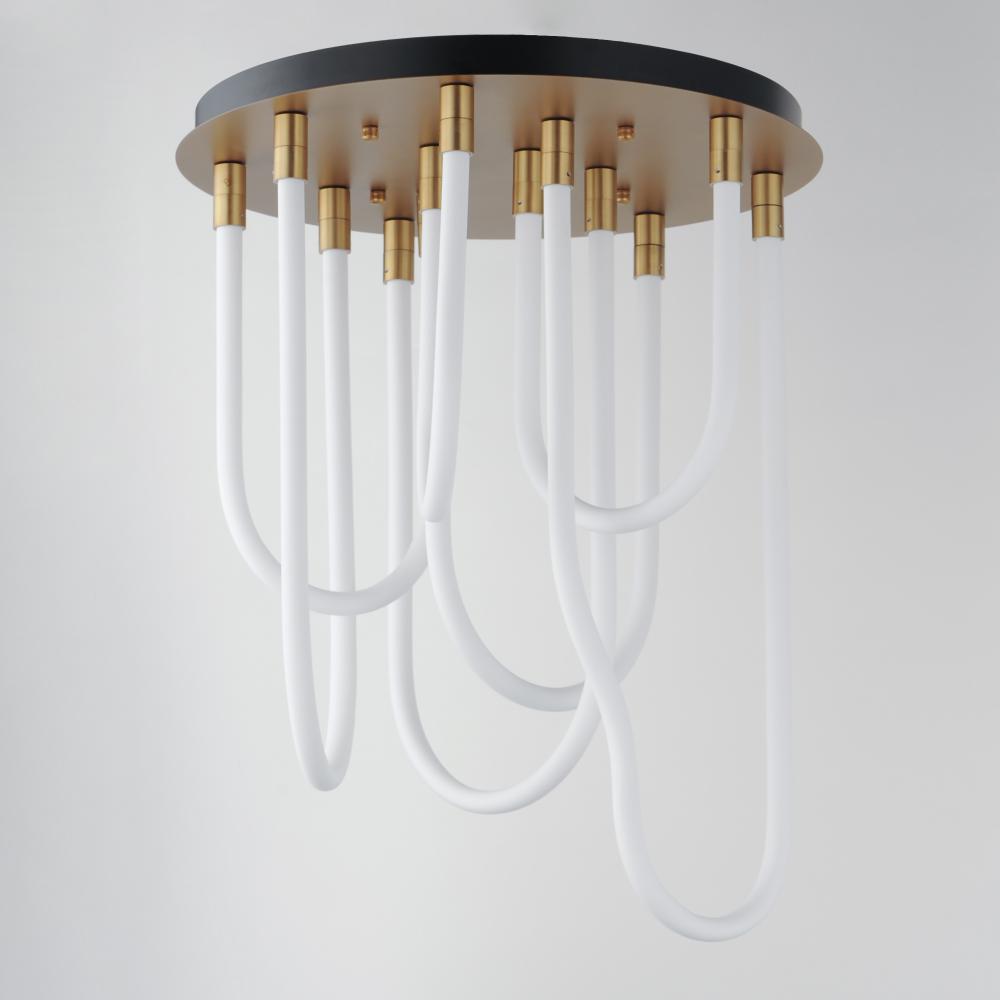 Sweeping matte white acrylic tubes encase an omnidirectional LED light source, arranged in abstract configurations inspired by solar flares. Minimal in composition yet dramatic in form, the Soleil collection offers a striking lighting solution. Available i