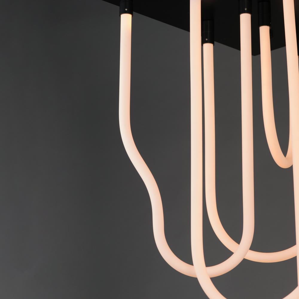 Sweeping matte white acrylic tubes encase an omnidirectional LED light source, arranged in abstract configurations inspired by solar flares. Minimal in composition yet dramatic in form, the Soleil collection offers a striking lighting solution. Available i