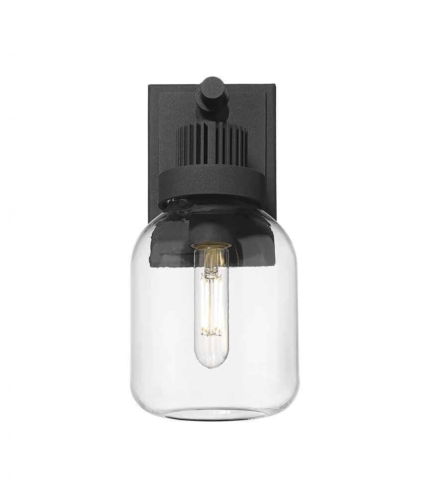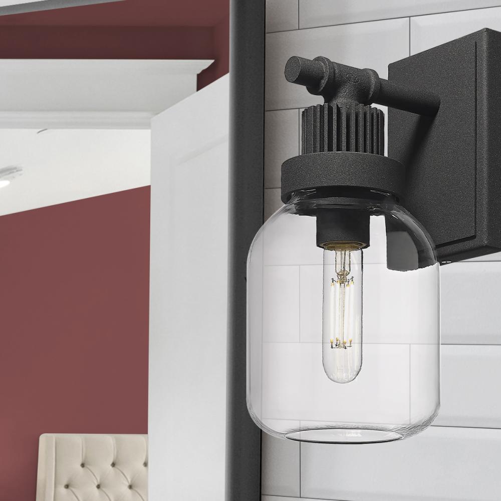 Truly a restoration design, the Somers Collection features stylized iron pipe fittings on the frame and sturdy gear shaped glass holders. The jar inspired glass shades are ideally paired with either the textured black and weathered iron finish.