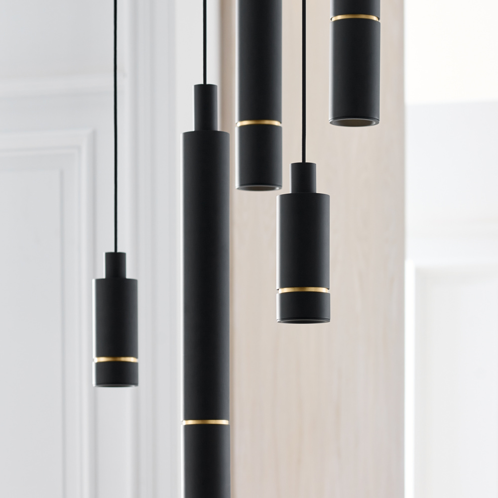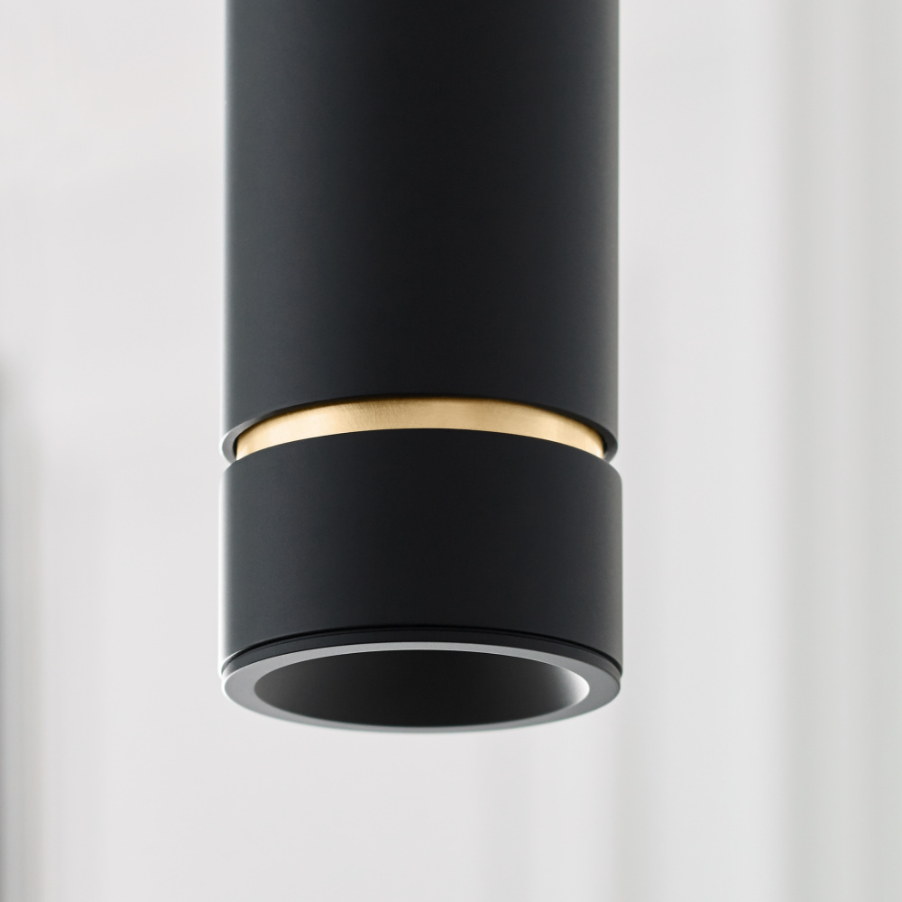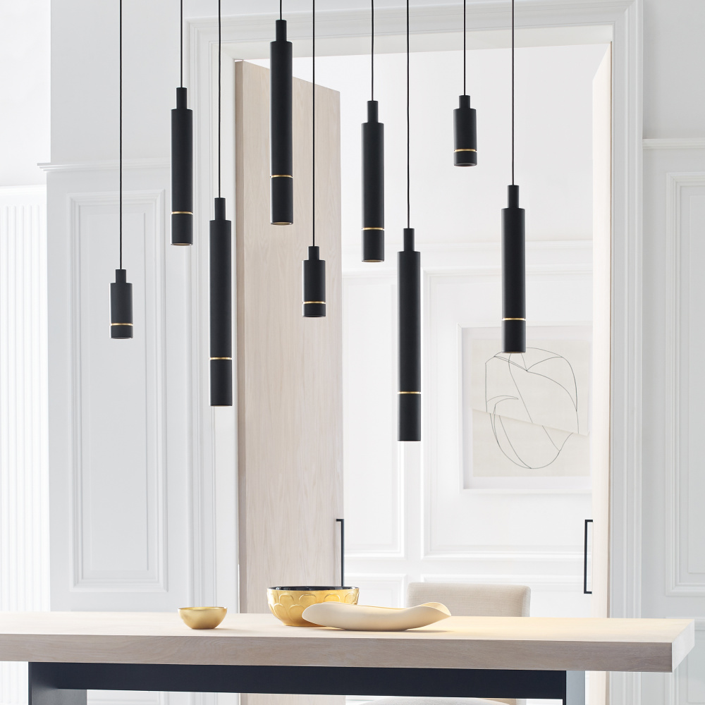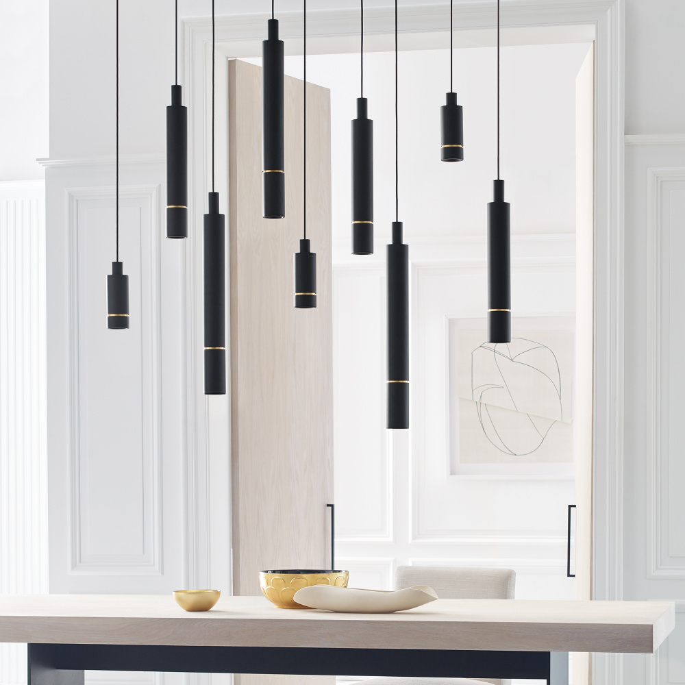 The Sottile X-Large Pendant by Mick De Giulio for Visual Comfort Modern takes the classic contemporary, sleek metal cylinder and gives it a fresh new upgrade by featuring either a complementary or contrasting recessed reveal. Each pendant ships with three ring details (Natural Brass, Nightshade Black and Polished Nickel) to either match the rest of the pendant or add striking, yet subtle contrast.