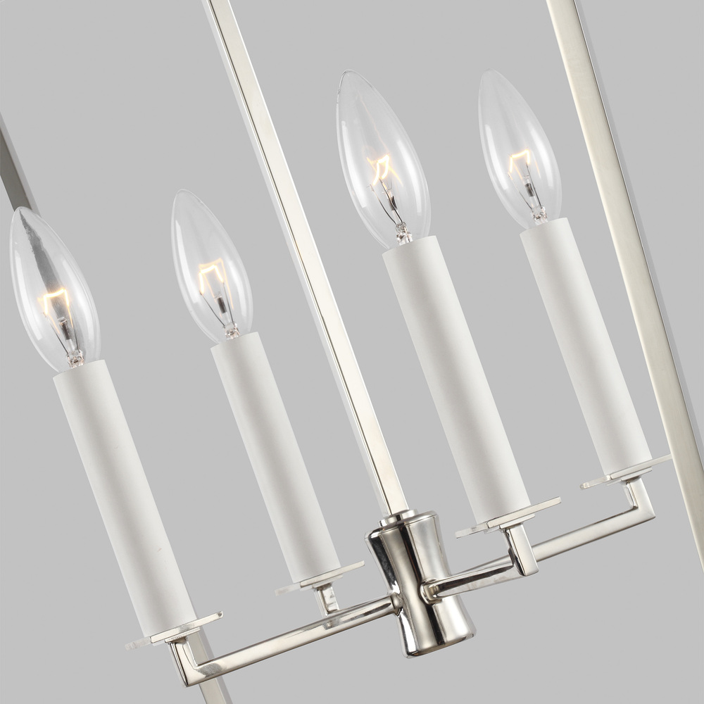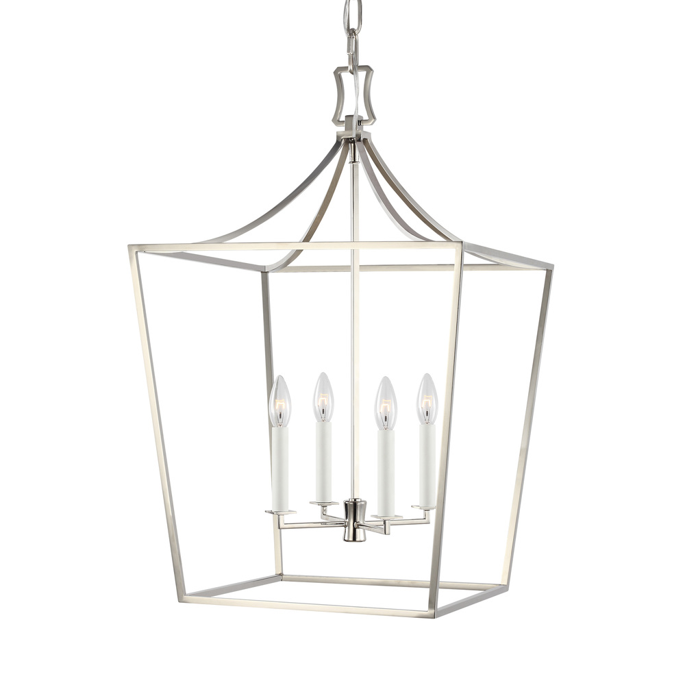 Southold by Chapman & Myers pairs curves and lines to form a classic geometric silhouette. This new, contemporary lantern has a thin frame that gives it an airy feel, paired with a tight hub for the candelabra. For a more modern look, try Southold in Polished Nickel. This lantern series will make any space well-lit and elegant.