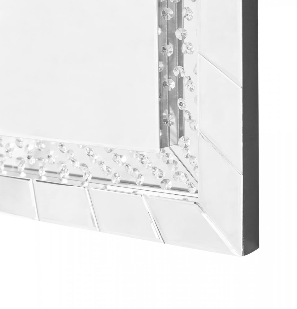 The Sparkle collection has crystal gems all over inside, crystals and silver mirror reflect shine. It combine both the function and decoration to set your house. Make a striking statement in your home or office with this stunning contempo style clear mirror. Featuring dozens of expertly cut, beveled edge mirror pieces, layered together to create a bold, yet elegant textured look, you can adorn any promintnt wall with this dazzling contemporary mirror and be sure to catch people’s attention. Contempo rectangular sunburst style clear mirror · Mirrors and all surrounding panels are made with beveled edges