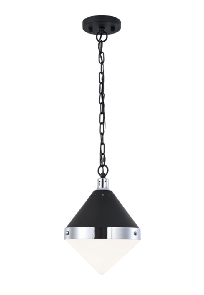 A fusion design that combines medieval style with modern elements. Sphericon is available in Matte Black with Aged Gold Brass or Matte Black with Chrome. Both colour options are complete with a clear glass shade or an opal glass shade. LIGHTBULBS NOT INCLUDED
