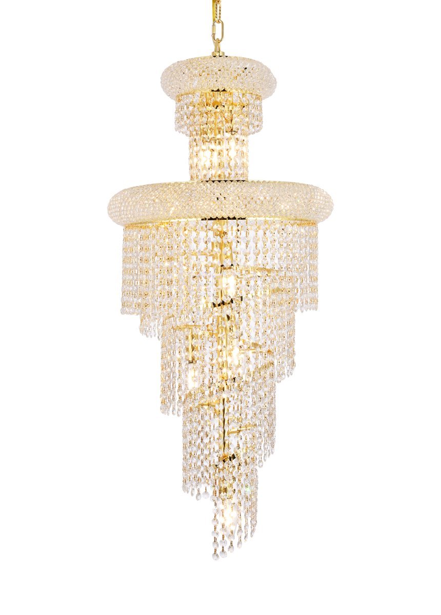 Spiral 10 light Gold Pendant Clear Royal Cut Crystal