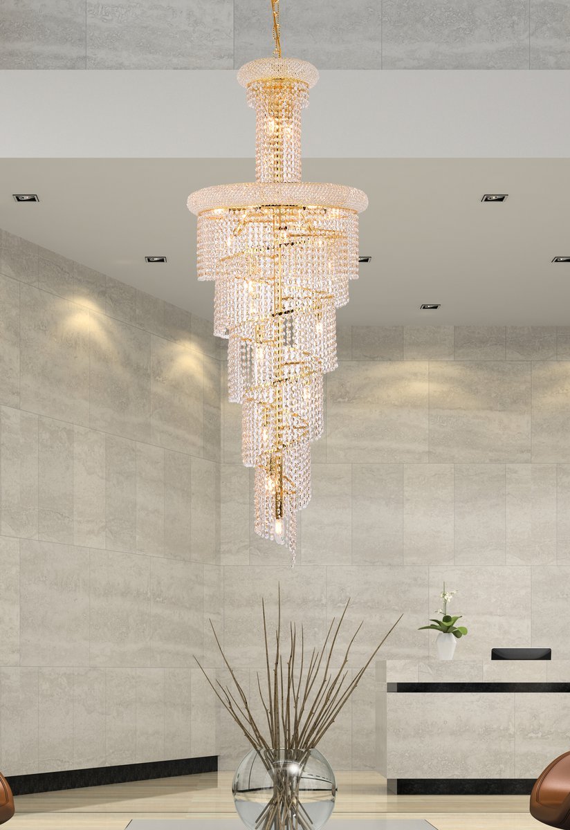 Spiral 22 light Gold Chandelier Clear Royal Cut Crystal