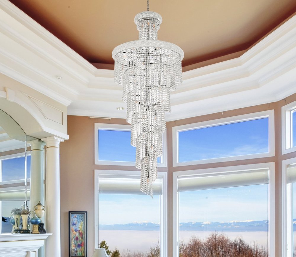 Spiral 28 light Chrome Chandelier Clear Royal Cut Crystal