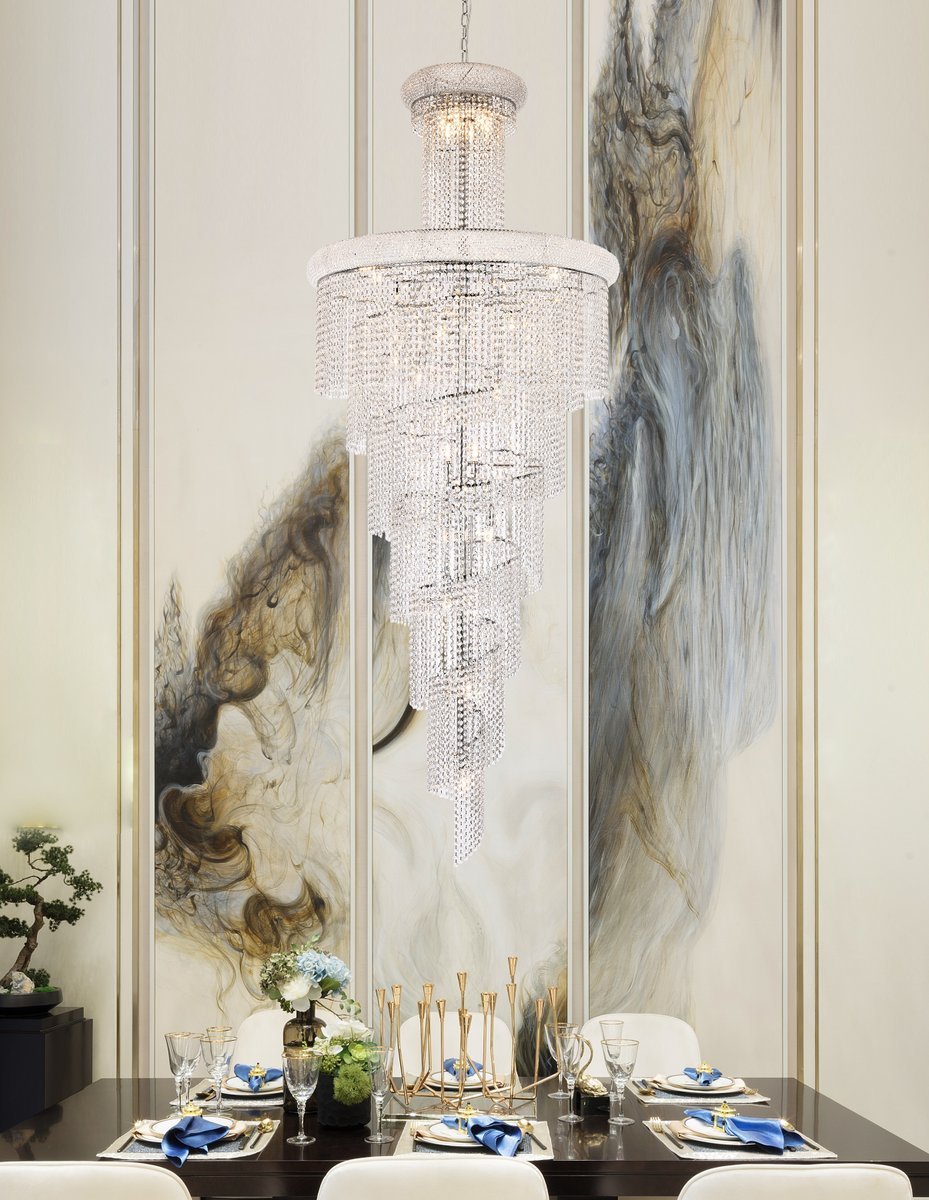 Spiral 32 light Chrome Chandelier Clear Royal Cut Crystal