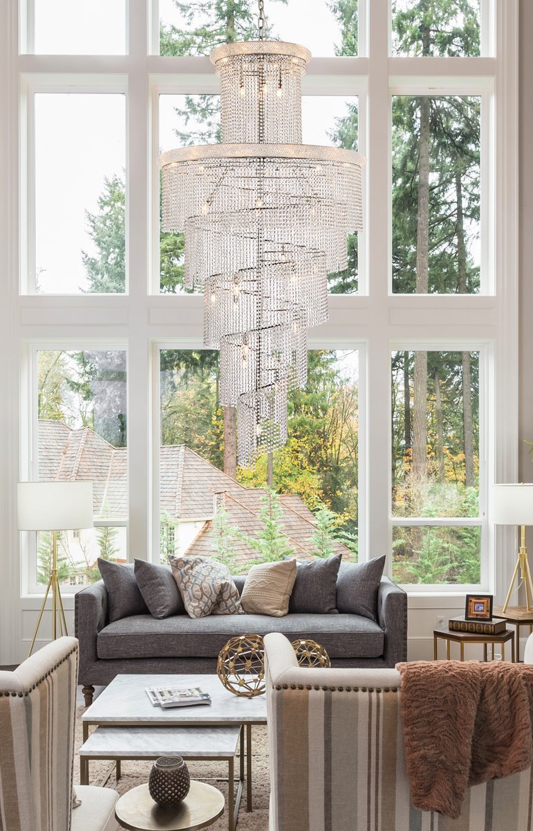 Spiral 41 light Chrome Chandelier Clear Royal Cut Crystal