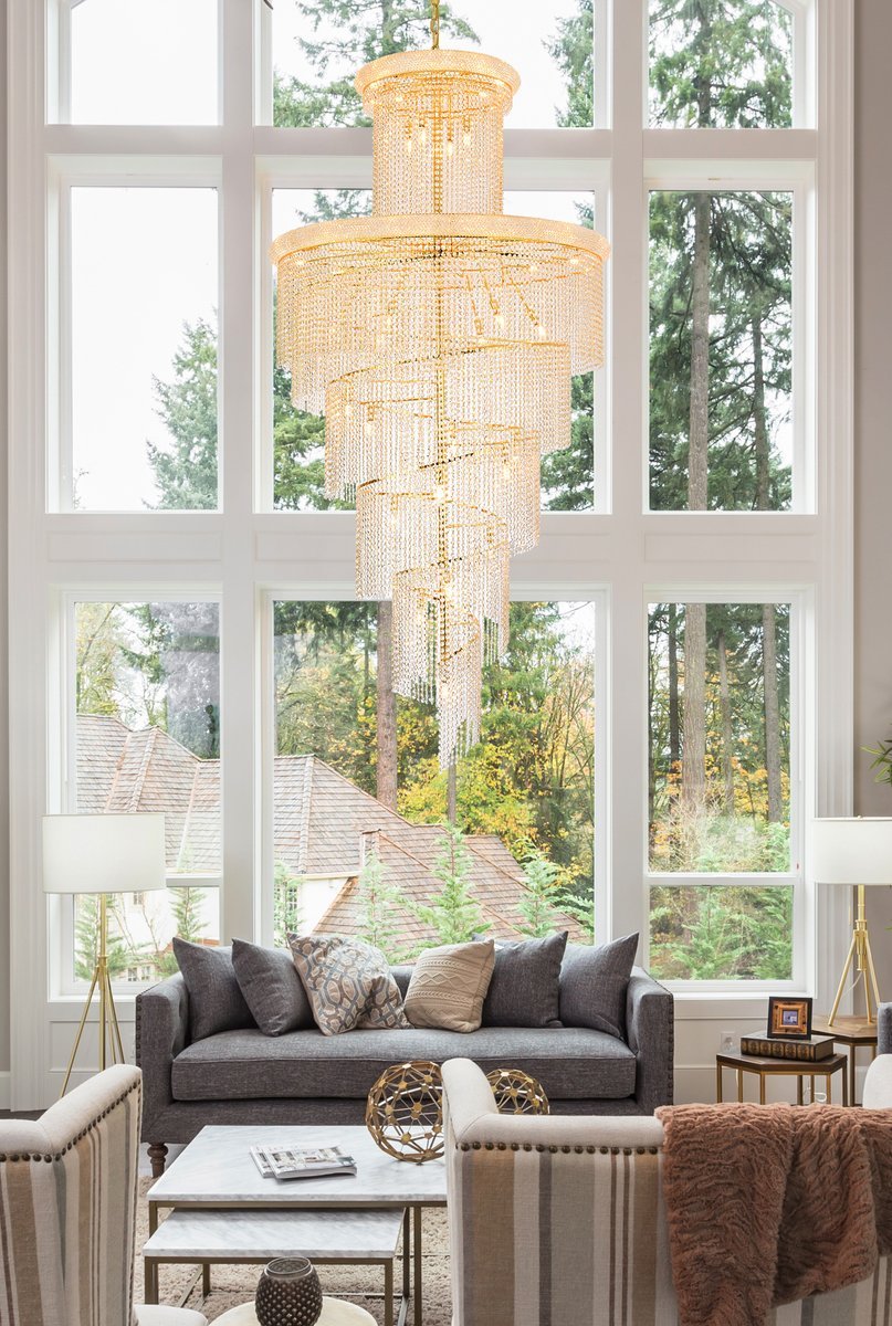 Spiral 41 light Gold Chandelier Clear Royal Cut Crystal