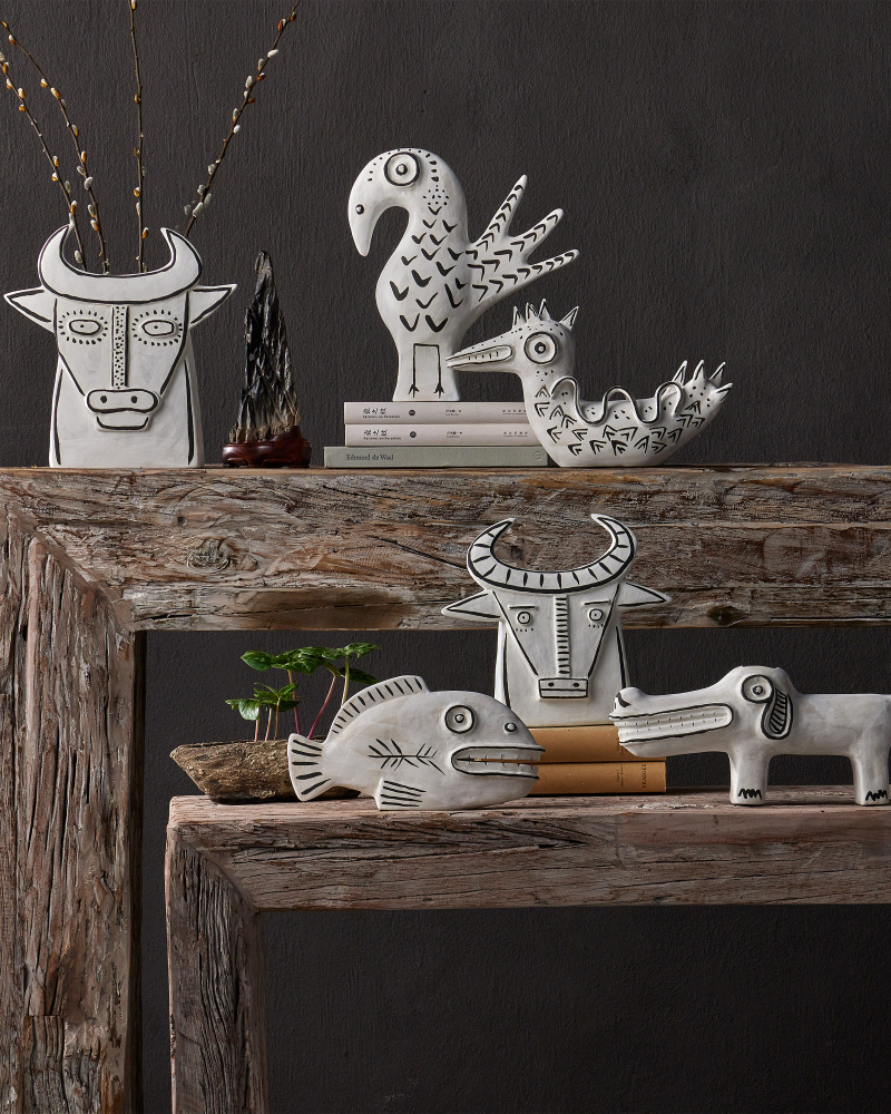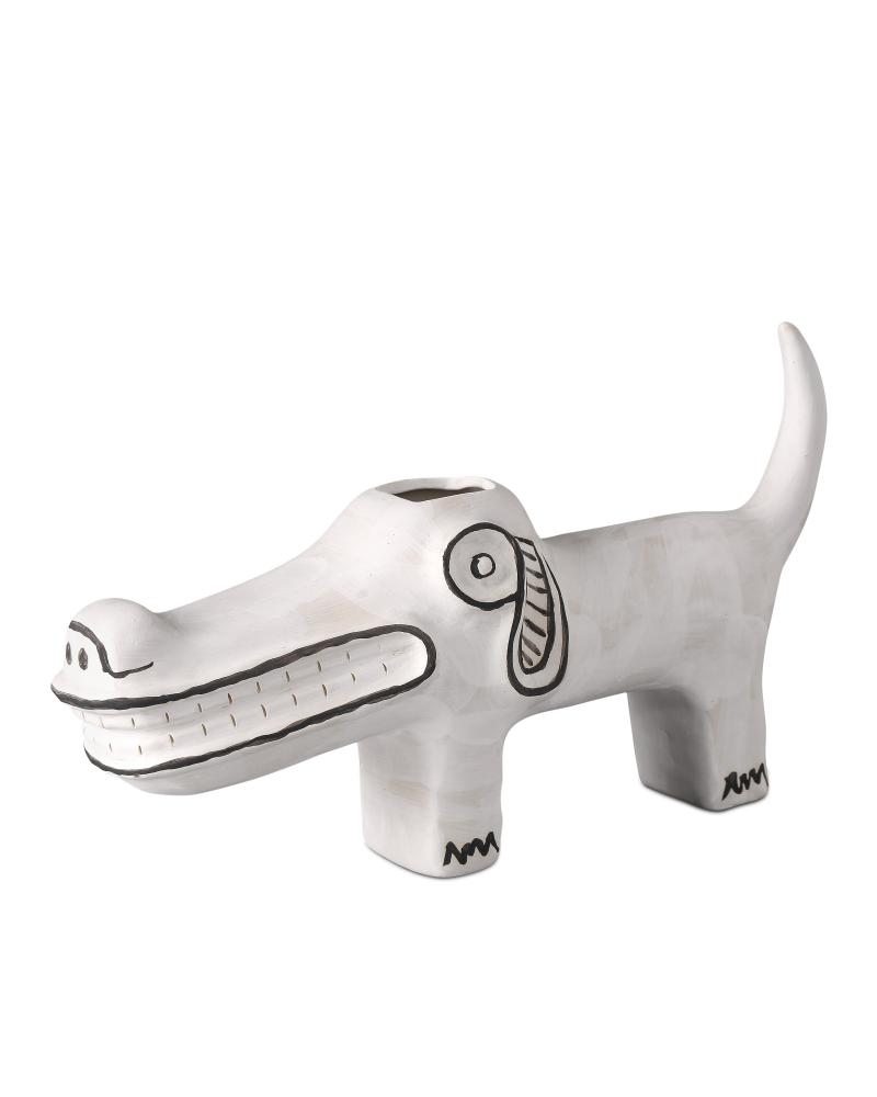 Artist Xiang Yang, a brilliant ceramist, took a walk on the wild side when he created Spot the Dog. Made of porcelain in a washed-white finish with black whimsical details painted by the artist, the haunting vessel will create a stir not unlike Picasso's work did during his ceramics period as he experimented in the South of France.