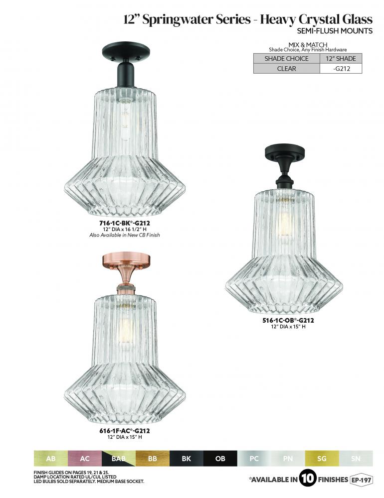 Springwater - 1 Light - 12 inch - Brushed Brass - Clear Fluted shade - Semi-Flush Mount