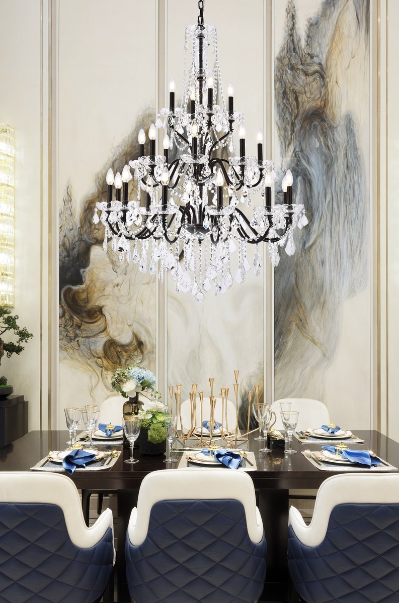 It’s easy to add a magnificent light fixture to your home with chandeliers and pendants from the St. Francis collection. Featuring intricate steel frames with graceful sweeping arms and candelabra-style bulbs (not included), these gorgeous fixtures include a dazzling visual array of delicate crystal bobéches, pendeloques, and beads. Available with a choice of beautiful metal finishes and types of crystal, in a range of diameters from 17 to 36 inches.