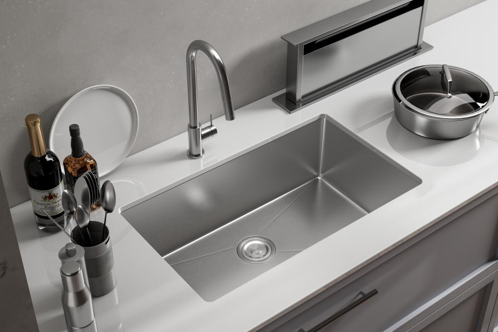 A spacious Single bowl provides ample space for washing several items while containing mess and splatter inside the sink. Classic rectangular undermount installation designed to withstand heat, corrosion, stains, and rust. Highly durable sink with drainage grooves and sloped sink bottom to help divert water into the drain. Installation ready and comes with the mounting hardware and cut-out template.