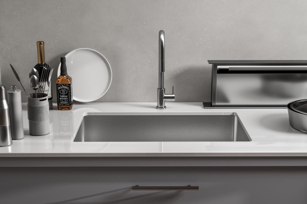 zero faucet holes allows for endless placement of the kitchen faucet and soap dispenser