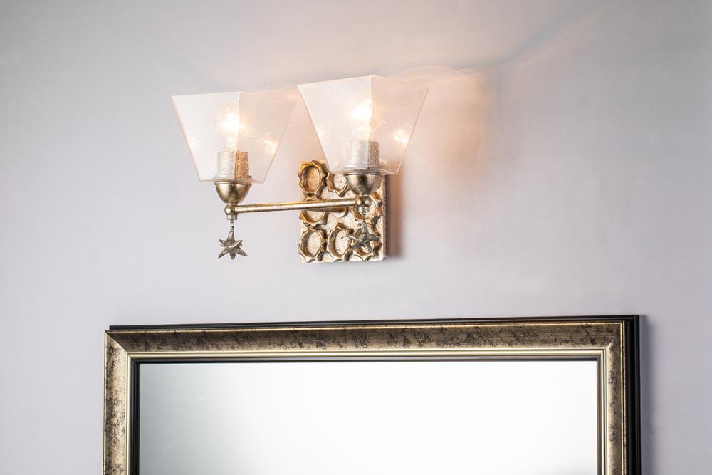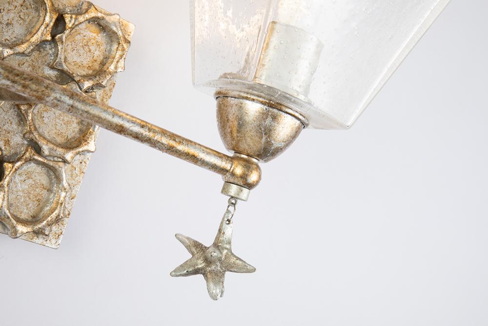 The Star 2-Light Sconce adds a whimsical, art-inspired touch with its silver finish and seedy pyramid glass. Perfect for mirrors or reading nooks, its layered design and textured 6" backplate create a striking focal point in any stylish space.
