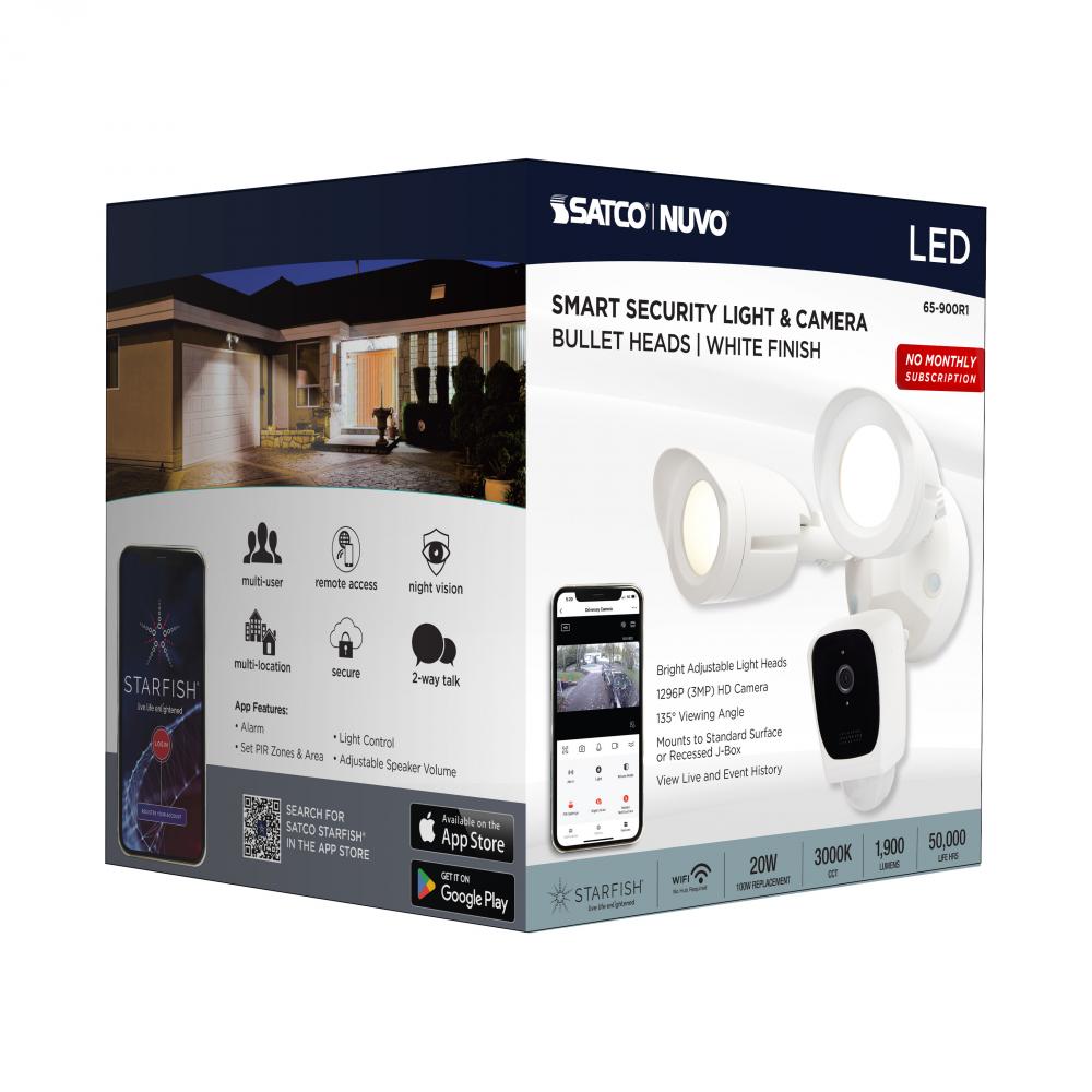 Stay connected and feel protected with SATCO’s 65-900R1 LED security floodlight with STARFISH technology. Featuring a 1296p HD camera with a 135-degree viewing angle, two-way talk, infrared night detection and advanced motion detection settings, you can
