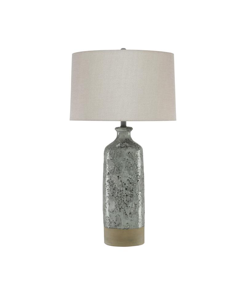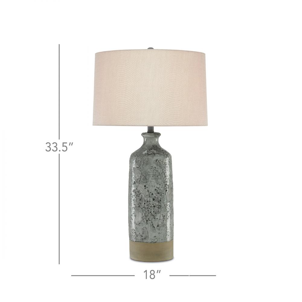The Stargazer Table Lamp has a constellation of patterns on its terracotta body achieved when our finish artisans sprinkled the material with glass mosaics. The implied base is a band of terracotta left unfinished, the raw material a primitive contrast to the crackled portion of the gray table lamp.
