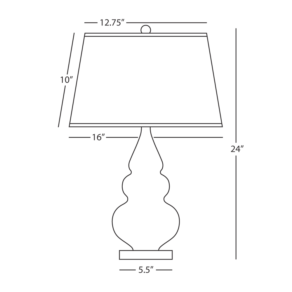 Our Triple Gourd collection features a simple but gracefully curving silhouette. Available in a wide array of vibrant colors and several different base finishes. - Steel Blue Glazed Ceramic with Lucite Base Small Triple Gourd Accent Lamp with Pearl Dupioni Fabric Shade